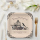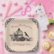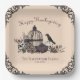 Celebrate Thanksgiving with this custom Gothic paper plate, hand-drawn in black ink. Featuring a Victorian birdcage surrounded by roses, pumpkins, skulls, and foliage, it showcases a beautiful palette of blues, plums, and creams, all against an elegant cream background. All text is editable—personalise with your family name and date for a unique, darkly elegant touch to your celebration.