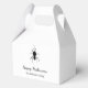 Cute Halloween favour box, with a simple gothic black spider and customisable script typography. Great for your guests at your next autumn or costume party.