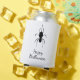 Spooky Halloween can cooler, with a simple gothic black spider and customisable script typography. Great for your guests at your next autumn or costume party.