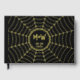Gothic Halloween Spider Web Monogram Gold Foil Black Wedding Guest Book. Add a touch of dark elegance to your Wedding. This guest book features a geometric spider web design with luxurious gold foil accents. The customisable monogram at the centre adds a personalised touch, making it a unique keepsake for weddings. This Day-of Stationery is sure to impress your guests and provide a lasting memento of your celebration of eternal love.