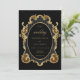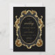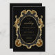 Gothic Striped Damask Black Gold Frame Two Sided Invitation