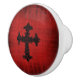 Gothic Style Door or Drawer Knob with a dark red velvet look and a black gothic cross in the centre.