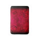 Black swirls on a red mottled background