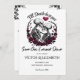 Announce your eternal commitment and have your guests mark their calendars with this stunning gothic 'Save the Date' card. The design features the iconic 'Till Death Do Us Part' skeleton couple in an eternal embrace, surrounded by deep crimson roses and thorny vines. Perfect for a gothic, alternative, or Halloween wedding, this card sets the perfect macabre yet romantic tone for your upcoming nuptials. Simply personalise with your names and wedding date, and let everyone know that a formal invitation will follow.