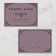 Here are Gothic Victorian inspired wedding place cards in purple featuring ornaments, scrolls, scroll work, a banner, a floral scroll frame, damask pattern background, and other old world style details all inspired by the Gothic mediaeval period and Victorian era. Elegance and refinement at its finest. You can customise the sample text fields to your liking.