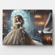 This breathtaking gothic fantasy artwork features a porcelain-like Victorian lady standing in a luxurious, dimly lit bedroom. Dressed in an opulent lace gown, her hauntingly beautiful presence exudes mystery and elegance. The dark, vintage furniture, flickering candlelight, and large arched windows overlooking a misty landscape create an enchanting and surreal atmosphere. This design is perfect for lovers of gothic aesthetics, Victorian fashion, and eerie, dreamlike art. Ideal for prints, accessories, and home decor, adding a touch of dark romance to any collection.