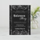 These gothic victorian black and white Halloween party invitations will let your guests know they're in for a delightfully frightful time! An ornate, old-fashioned swirly frame, cracked with age, covered in spooky cobwebs, is grimly magnificent against a lightly textured, moody black background with crackling lightning. The text is a combination of grunge script, classic easy to read block lettering, and Old English, mediaeval style type. Customise the back with your own scary quote, or delete the field to leave it blank.