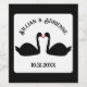 This awesome sheet of Wedding wine bottle labels features a digital art image of a pair of beautiful black swans facing each other and looking like they are kissing. They are black with red eyes and beaks. There is custom text so you can include the names of the happy couple and the Wedding date.