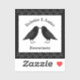 This awesome shaped sticker sheet features a digital art image of a pair of beautiful black ravens facing each other and looking like they are kissing. They are black with beady eyes and grey beaks and feet.