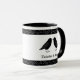 This awesome Wedding mug features a digital art image of a pair of beautiful black ravens facing each other and looking like they are kissing. They are black with beady eyes and grey beaks and feet.