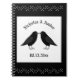 This awesome notebook features a digital art image of a pair of beautiful black ravens facing each other and looking like they are kissing. They are black with beady eyes and grey beaks and feet.