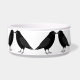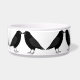 This awesome patterned pet bowl features a digital art image of a pair of beautiful black ravens facing each other and looking like they are kissing. They are black with beady eyes and grey beaks and feet.