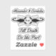 This awesome shaped sticker sheet features a digital art image of a pair of beautiful black scorpions facing towards each other. Each scorpion is white and has eight legs, a venomous sting and a pair of pincers. The pincers are being held together to form the shape of a heart. The background is black. A beautiful gothic Wedding design. There is custom text so you can include the names of the happy couple and a message.