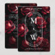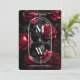 Gothic Wedding Skull Roses Monogram Black Red Invitation