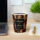 This gothic wedding paper cup features a pattern of creepy skulls floating in a black abyss behind your custom text. Each skull is adorned with red roses for your romantic occasion. Their empty soulless eyes are contrasted sharply against the goth rose crown and bouquets of dead flowers. A funny and morbid twist on marriage.