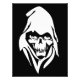 A Gothic white cartoon of death hood (the grim reaper face) on a black background. This designs is a bit creepy...