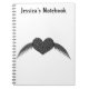 This awesome customisable notebook features a pretty gothic black heart with the appearance of fine lace. The heart is flanked on both sides with shining metallic silver wings. There is customisable text at the top of the notebook allowing you to personalise it for yourself or give it as a gift.