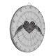 This awesome dart board features a pretty gothic black heart with the appearance of fine lace. The heart is flanked on both sides with shining metallic silver wings.