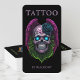 This gothic tattoo studio business card is designed for professional tattoo artists, tattooists, body art professionals, and creative studios who want to make a bold first impression. The detailed winged skull artwork with glowing accents creates a dramatic, high-end tattoo aesthetic that stands out instantly.
