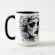 Gothic Woman Mug. © Dark Heart Desires. A beautiful Gothic woman's face in black and white is on this mug.