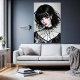 A portrait of young Gothic women with black hair and dress, white skin with red lip. This is a AI generated art.