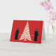 Embrace the enigmatic allure of the holidays with our "Gothic Yuletide" Christmas card. This minimalistic design features shadowy figures standing sentinel around a starkly beautiful Christmas tree, set against a dramatic red backdrop. The contrast of the dark silhouettes and the bright holiday symbol creates a striking image that captures the mystery and quiet grace of a midnight Christmas Eve. Perfect for those with a taste for the unconventional, this card offers a unique take on the festive season.