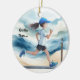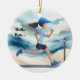 This charming design showcases a female runner donned in a blue cap and blue running shoes, an ombre background in shades of blue. This is alongside the phrase 'Gotta Run' emblazoned on a ceramic keepsake ornament. The saying can be changed as desired.