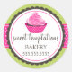 © 2013 Socialite Designs. Our elegant cupcake bakery sticker has a gourmet cupcake inside a lace / scalloped circle. The design also has a vibrant fuchsia pink ribbon with polka-dots. A wonderful design to use as seals on bakery boxes or to seal favour bags for parties.