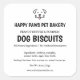Our gourmet dog treat bakery labels are designed to capture attention while communicating quality, care, and craftsmanship. Each label features a charming dog outline graphic, adding a warm, playful touch that instantly connects with pet lovers and reflects the joy behind every handmade treat. Your business name is prominently displayed, giving your brand a strong, professional presence that customers will recognize and trust. The treat type is clearly highlighted, making it easy for shoppers to identify flavors and choose the perfect option for their dog, whether it’s peanut butter bites, pumpkin biscuits, or savory training treats. Included a neatly formatted ingredient list, helping customers feel confident about the wholesome, high-quality ingredients used in every batch. The net weight of the product is clearly shown to provide accurate information and meet standard packaging expectations. To support your business growth, your website is featured directly on the label, making it easy for customers to find you online, explore your full product range, and place future orders. Blending a clean, professional layout with a friendly, artisanal feel, these labels are perfect for gourmet dog treat bakers who want packaging that reflects the love and quality baked into every treat.