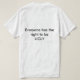 Back of shirt reads 'Everyone has the right to be ugly'.
