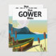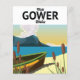 Gower Wales travel poster in a wonderful retro or vintage style.