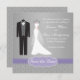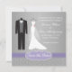 White wedding gown and tuxedo on a grey background bordered with damask pattern Save the Date Invitation.