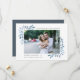 Announce your upcoming wedding in chic style with our elegant photo save the date cards. Graceful sprigs of crisp blue watercolor leaves and berries frame your photo, with your wedding details at the top and bottom.
