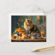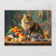 graceful cat is the centerpiece of this still life, surrounded by an array of ripe fruits and beautiful flowers.
