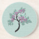 Add a calming focal point to your table w/ a trendy coasters featuring a graceful Asian flowering tree in mint sage green w/ plum coloured blossoms.