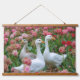Graceful Geese in Blooming Garden Animal Lover Hanging Tapestry