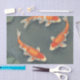 Immerse yourself in tranquil elegance with this breathtaking koi fish artwork. Two majestic orange-and-white koi carp with vibrant red caps glide peacefully through still water, creating gentle ripples that circle in harmonious motion. Surrounded by lush green lotus leaves floating on the surface, the realistic details capture every shimmering scale, flowing fin, and serene expression — evoking timeless peace, good fortune, and the quiet beauty of a Japanese garden pond.
