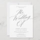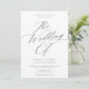 This gorgeous wedding invitation features graceful calligraphy script in dark grey, a classic white background, and elegant typography. This elegant design is a fabulous choice for many styles of events, from classic to boho. You can customise this design even further by adding a photo or additional text to the back. See the collection for coordinating items.