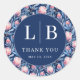 This elegant design features a floral motif with delicate pink and blue flowers, creating a romantic and sophisticated atmosphere perfect for wedding stationery. The circular layout is adorned with clean, classic typography that complements the soft color palette, evoking a sense of timeless charm. Ideal for expressing gratitude to guests, this sticker adds a touch of grace to your special day's thank-you notes or favors, seamlessly blending beauty and sentimentality.