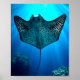 Dive into the mesmerising beauty of the underwater world with this stunning image of a spotted ray gracefully swimming through the deep blue ocean. The soft, ethereal light filtering through the water creates a magical ambiance, highlighting the intricate patterns and textures of the ray's spotted skin. This captivating scene invites viewers to explore the wonders of marine life and appreciate the delicate balance of nature beneath the waves. Perfect for those who love ocean photography, marine wildlife, and serene, calming art.