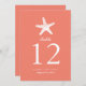 FROM THE GRACEFUL STARFISH WEDDING COLLECTION. Doubled Sided Table Number Cards perfect for your Rehearsal Dinner, Wedding Reception or any dining event. A single elegant starfish design in a PAPAYA / CORAL Colour. If you have any questions on this design or want a colour change to match your wedding please email me paula@labellarue.com Check for the Wedding Suite, INVITATION, RSVP, RECEPTION and GUEST SEATING Cards to match! Don't forget to pick your favourite cardstock to have it printed on!
