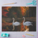 Graceful White Swans Gliding Across Autumn Pond Tissue Paper