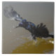 Photograph of a pretty Grackle Bird, flying and splashing in water, printed on a Tile. --- You could use this Tile in your kitchen around the pool or in your bathroom with the rest of your tiles.