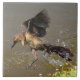 Photograph of a pretty Grackle Bird, flying and walking on water, printed on a Tile. --- You could use this Tile in your kitchen around the pool or in your bathroom with the rest of your tiles.