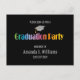 This is a modern and simple design with a grey graduation cap, yellow gold tassel, white text and black background. Colourful "Graduation Party” image. Party details on the back. Yellow gold is printed colour, not metallic foil. Personalise this product by adding the graduate's name and party information.
