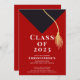 Start off your event right with our trendy & stylish black grad cap & gold tassel with a red background graduation party invitation. Perfect graduation invitation for a high school graduation or college graduation. Just fill in your information add your photo and you're all set to go. Visit our shop to view this graduation invite in a large assortment of school colours