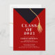 Start off your event right with our trendy & stylish black grad cap & gold tassel set on a red background graduation party post card invitation. Perfect graduation invitation for a high school graduation or college graduation. Just fill in your information add your photo and you're all set to go. Visit our shop to view this graduation invite in a large assortment of school colours