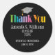 Modern and simple design with a grey graduation cap, yellow gold tassel, white text and black background. Colourful "Thank you” image. Yellow gold is printed colour, not metallic foil.