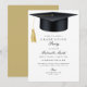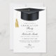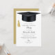 A modern graduation ceremony invitation card with simple black and white colors. The text details and image can be personalized.