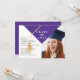 Start off your event right with our trendy & stylish purple grad cap & gold tassel with a white background graduation party post card invitation. Perfect graduation invitation for a high school graduation or college graduation. Just fill in your information add your photo and you're all set to go. Visit our shop to view this graduation invite in a large assortment of school colours